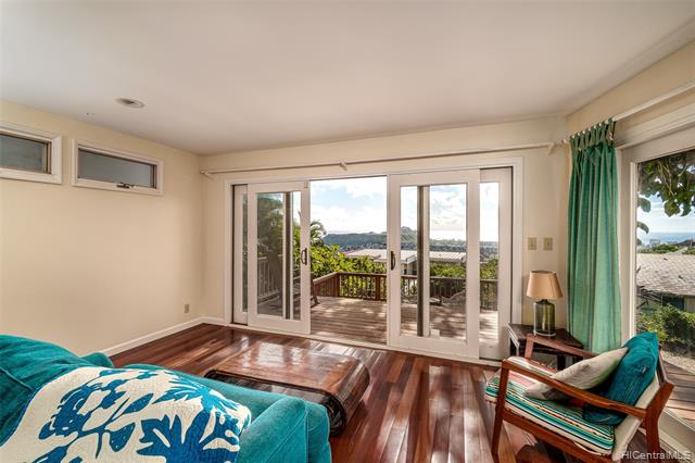 今日はマウラナニハイツという高台の住宅地にある家をご紹介します。このマウラナニハイツは、みなさんもご存じのカハラモールから、高速道路を挟んだ山沿いの斜面にひろがる住宅地となっていて、高い場所にある建物ほど、その景色は素晴らしいものになります。