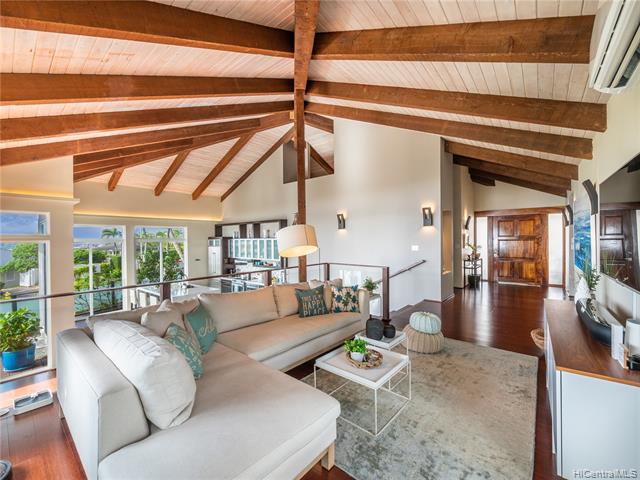 今日は、ワイキキから車で約15分ほどの場所のアイナハイナの山手に位置するゲーテッドコミュティ「ハワイロアリッジ」に立つ邸宅をご紹介しましょう。コミュニティ専用のスロープをあがったドライブウェイの先にある、24時間セキュリテゲートからほど近い場所にある、こちらの邸宅は2015年にヨーロッパの建築家によって完全に改築されたもの。不動産の登記上は築39年となってはいるものの、ほとんど築浅といえる物件です。