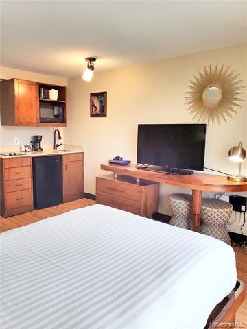 ワイキキの中でも合法的に短期レンタル(バケーションレンタル)ができるリゾートゾーニングにあり、現在アクアバンブー・ワイキキというホテルとしても稼働中です。