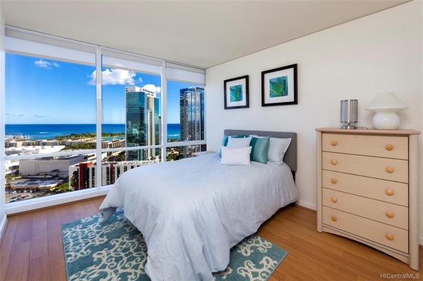 美しいオーシャンビュー付きの手入れの行き届いた高層階ユニット、海にもショッピングにも便利な素晴らしいロケーション、そして贅沢なアメニティの数々。これだけ条件が揃っていて80万ドル台というのは見逃せません。ホノルルのシティライフを楽しむにはぴったりのユニットです。