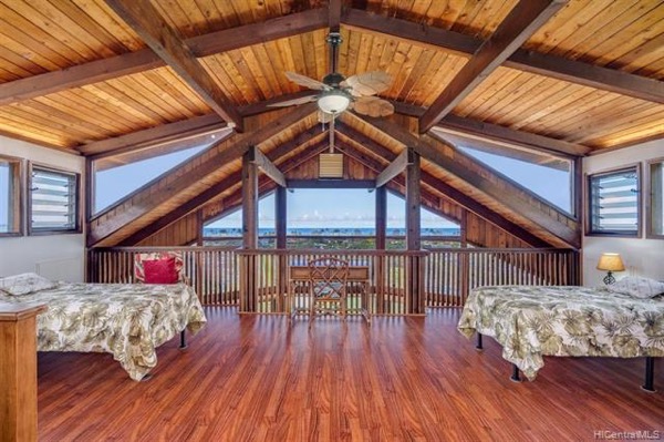 今日注目した物件は、オアフ島北西部・ノースショアの山際にあるオーシャンビュー物件。山小屋風のデザインが素敵な4ベッドルームの一軒家です。