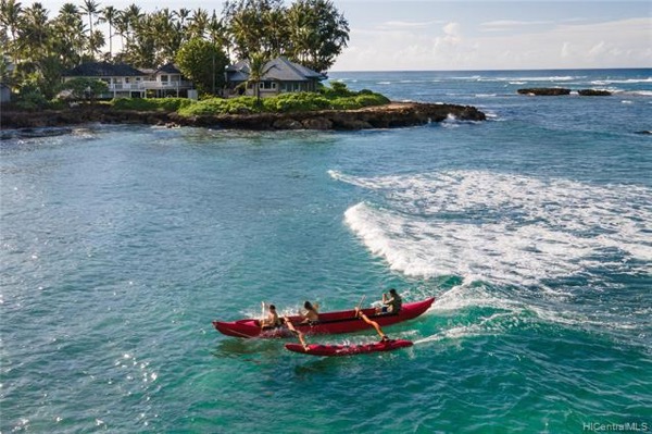 オアフ島の数あるビーチの中でも、特に静かで観光客などが訪れることがないカウェレベイのビーチ。冬になると高波が多くなるノースショアにおいて、サンゴ礁で守られているカウェレベイは安全な湾としても知られています。また自然保護の目的からこれ以上の開発が制限されている湾なので、その意味でも岬の突端に建つこの邸宅はとても貴重です!