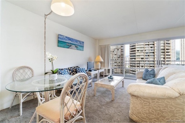 ワイキキの海へ行くにも、街へ行くにも、またアラモアナセンターへショッピングへ行くにも便利なロケーションにある「イリカイアパートメント」のユニット。