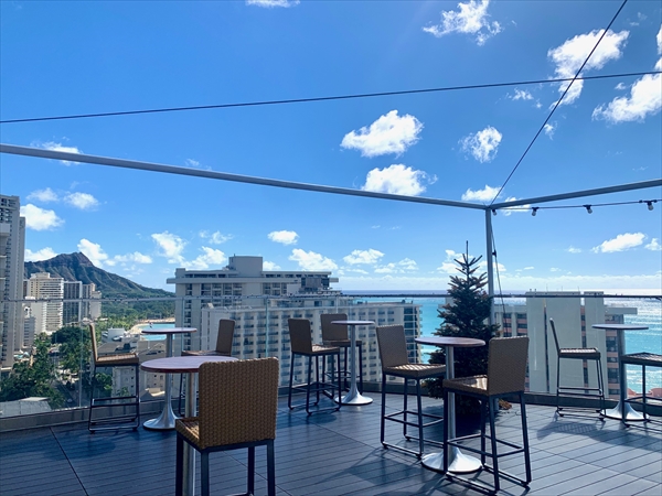 ハワイ・ワイキキのルーフトップと言えば「スカイワイキキ(Sky Waikiki)」。ワイキキの中心に位置し、ダイヤモンドヘッドから海まで一望できる贅沢な空間、夕日や夜景もとても素敵で観光客やおしゃれなローカル共に愛されるお店です。