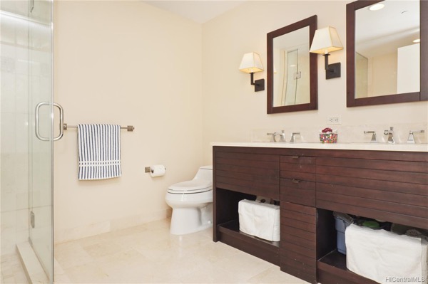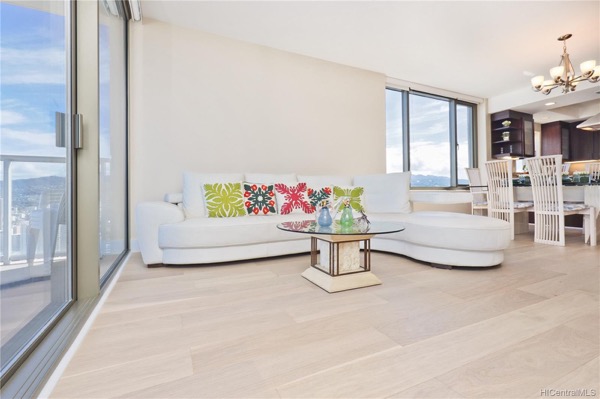 今日、ピックアップしてご紹介するのは、ワイキキ西側に建つ築浅の高級タワーコンドミニアム「ウォーターマーク」高層階にある2ベッドルームのユニットです。