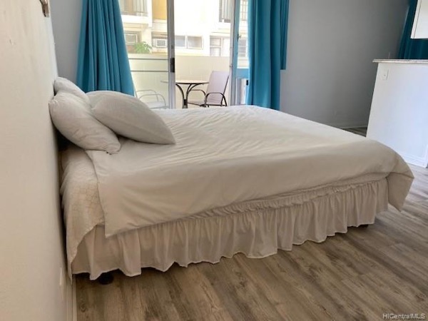 ベッドサイドに作られたミニキッチン脇に2箇所ラナイが付いています。スタジオで2箇所に広めのラナイが付いている物件は中々珍しいのではないでしょうか?両方のラナイの窓を開ければ光と風がユニット内を通り抜けます。