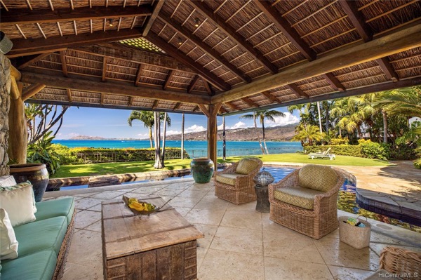 そのココカイの中でもオーシャンフロントの豪邸が集まることで知られているハナぺぺループに今日ご紹介する豪邸が建っています。目の前はエメラルドグリーンに輝くゴージャスなマウナルア湾。裏は有名観光地でもあるハナウマ湾を囲むように指定された自然保護区になっています。