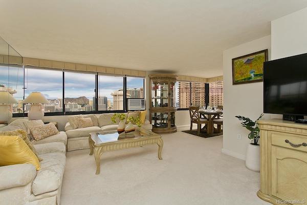 今日注目したのは、ワイキキのスカイテラスがついたコンドミニアム「ウィンザー」の高層階にある2ベッドルーム物件。ダイヤモンドヘッドからワイキキの海までのパノラマビューが楽しめる理想的なユニットです。