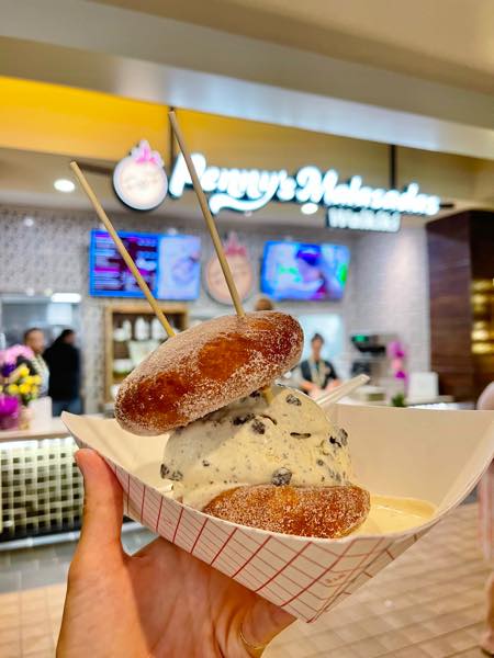 2018年にオアフ島ライエでフードトラックとしてオープンした「ペニーズマラサダ」がワイキキのロイヤルハワイアンセンターのパイナラナイフードコート内にオープン。ハワイアンシュガー、シナモンに加え、ウベやココナッツ、ピーチやヌテラなどのクリームが入ったマラサダが揃っています。マラサダアイスクリームサンドイッチもぜひお試しください。