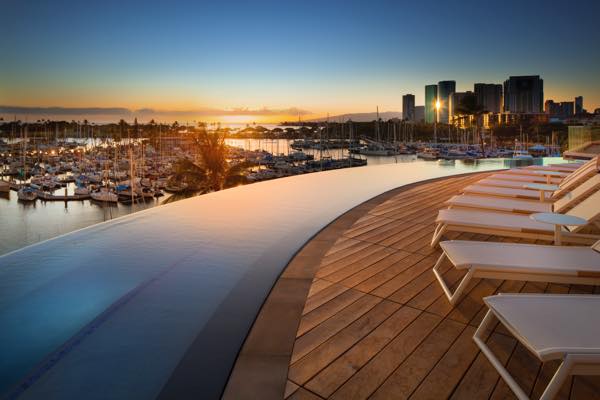 プリンス ワイキキの最高のフィーチャーは何と言っても、美しいサンセットや青い海を心ゆくまで堪能できるインフィニティプール。