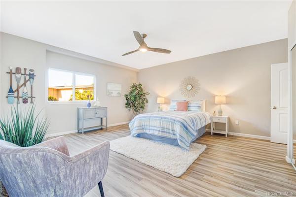 なお、各部屋にはスプリット式のエアコンがついているため、暑い日でも快適です。裏庭からは、すぐにボートやカヤック、パドルボーディングなどで海に出ることができます。また、この住宅は一軒家なのですが、「ワイカルア・ベイサイド・コミュニティ」内にあるため、月々の管理費$592がかかります。この管理費には、水道、下水道、共用エリアの電気と配管、前庭の造園、道路の維持などが含まれています。