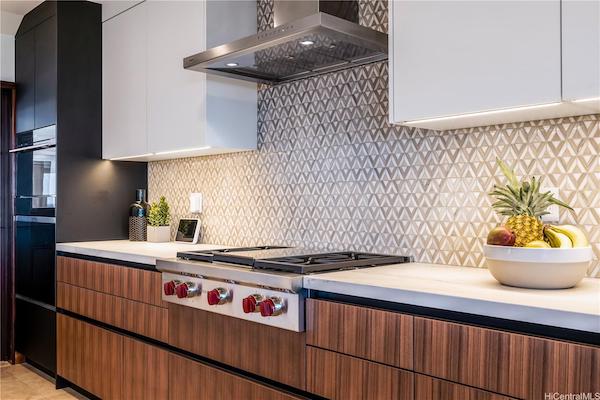 美しいキッチンはヨーロッパのキッチンメーカー・バウフォーマット社製のものが使われており、また高級家電メーカーであるウォルフ社の家電や日本でも人気のあるミーレ社製の家電が設置されています。