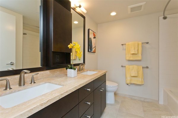 今日注目するのは、アラモアナ海側にある高級コンドミニアム「ワイホヌアアットケワロ」にある海と花火が見える2ベッドルーム物件。祝日などにアラモアナに打ち上がる花火も楽しめるお部屋です。