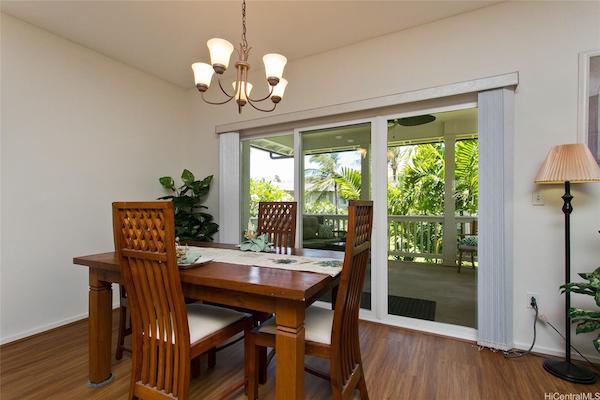 こちらはダイニングスペースの様子。天気次第で食事を室内でとるか、屋外でとるか決められるのもハワイの暮らしの醍醐味です。オアフ島西側は雨季でも晴れていることが多いので、アウトドアダイニングの方が多くなりそうですね。