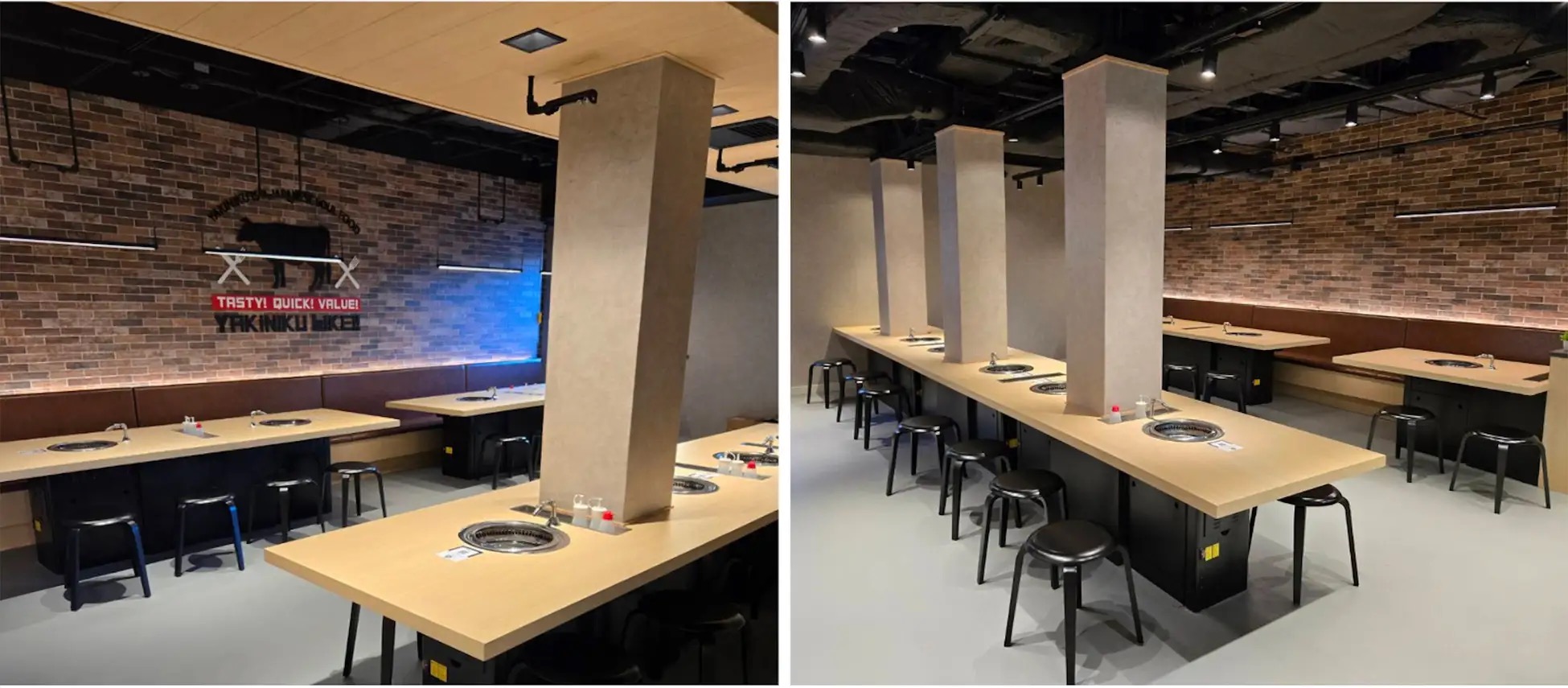 日本ではおひとり様歓迎の焼肉店として一人用のロースターで知られる焼肉ライクだが、ハワイでは食文化の違いやグループ利用の多いケアモク通りという立地を踏まえて、2名や4名用のロースターを備えた全席65席のテーブルサービスの業態となっている。
