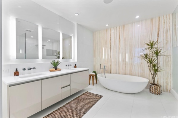 さらに天井高は約3メートルもあります。コーナーには海とサンセットを堪能できる屋根のついたラナイ部分だけでも30㎡以上と、なにもかもが規格外、それまであった”コンドミニアムの概念”をはるかに超えた仕様は、その後のホノルルの不動産業界を変えたエピックとなり、今に至るまでその輝きは変わりません。