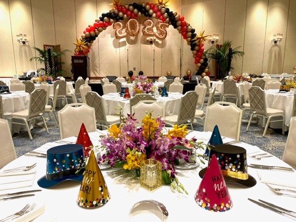 名門ホテル「ハレクラニ」のボールルームで開催される250名限定のディナーパーティー。古き良きハワイアンエレガンスが漂う空間で、ホテルシェフによるスペシャルビュッフェと年越しそばがふるまわれます。 会場ではハワイアンミュージックやライブエンターテイメント、抽選会など多彩なプログラムが行われ、パーティーの最後にはプールサイドから正面に花火を鑑賞。「ハワイらしさ」と「ハレクラニの格調」を一度に味わえる、人気のイベントです。.jpg)