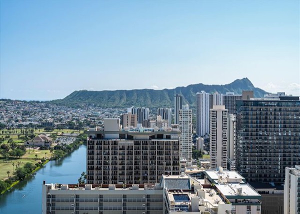 この部屋の魅力はなんといっても広いバルコニーから真正面に見晴らすダイヤモンドヘッドビューとパーシャルオーシャンビュー。ワイキキ運河の抜けの良い眺望は、朝日や虹が楽しめ、夜はホノルルの優しい夜景と、ハワイの様々な表情が楽しめる東向きとなっています。一泊の宿泊料は$140台〜400台までシーズンによって変動します。