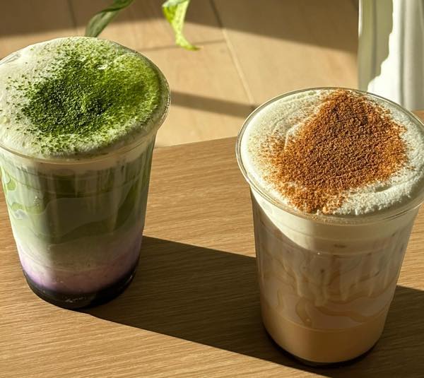 おすすめのドリンクはバナナブレッドラテやアイランドマッチャ。バナナブレッドラテはブラウンシュガーエスプレッソにバニラ、メープル、バナナシロップを加え、甘いクリームフォームとシナモンで仕上げられている。