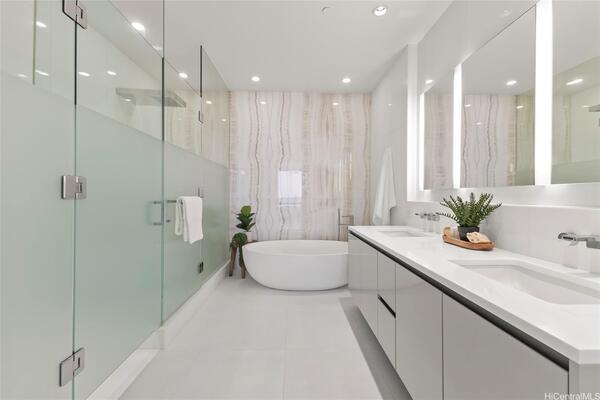 本物件は、室内約2,017 sqft(約187㎡)、ラナイ約77 sqft(約7㎡)というゆとりある広さに加えて、ダイヤモンドヘッド、紺碧の太平洋、マリーナ、緑豊かな山並み、ホノルルの街並みといった4方向のパノラマビューが魅力。