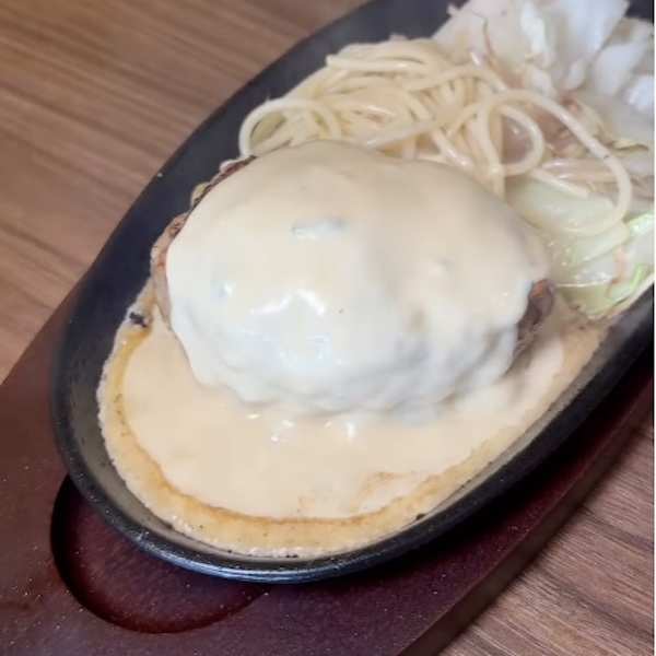 熱々の鉄板には俵形のハンバーグとスパゲッティ、そしてソースをかけてジュワーっと湯気が上がる様子はまさに日本のハンバーグ屋のスタイル。ハンバーグはジューシーで旨味たっぷり。ランチ、ディナーともに(今のところ)早い者勝ちとのことで、気になる人は早めの時間帯に行くことをおすすめする。