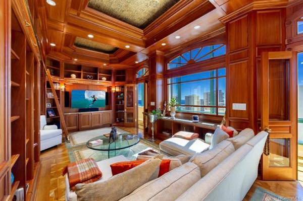 最近、ワイキキ内にたったホテルコンドミニアムなどのペントハウスのモダンラグジュアリーなインテリアは素敵ですが、このまるでお屋敷のようなゴージャス感と重厚感は、なかなか感じられないかも。