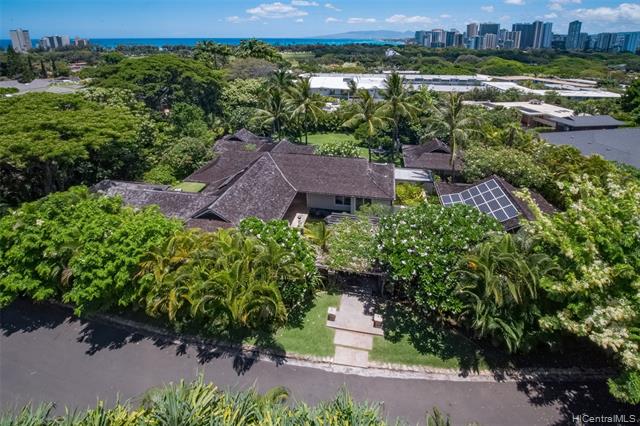 今日ご紹介するのは、ダイヤモンドヘッドの裾野に豪邸が点在するエリアに立つアイランドスタイルの豪邸。モンサラット通りに近いエリアにあるのですが、この辺りには表通りからは一見すると見えないところに豪邸が点在していて、このノエラドライブという通りにも、ひっそりと大区画の豪邸が並んでいます。