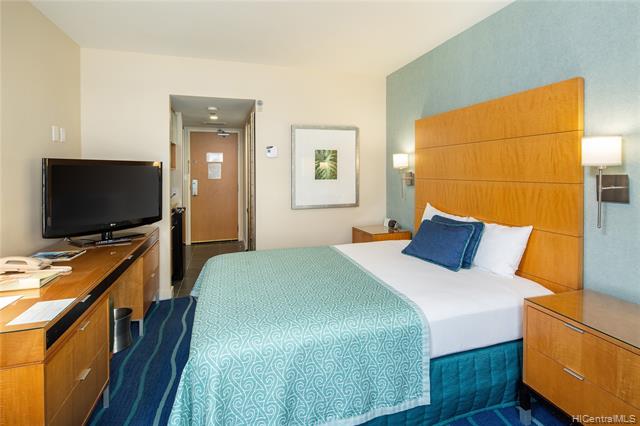 アラモアナホテルは、ユニットはすべてホテル仕様になっています。こちらのユニットも一般的なスタジオサイズの間取りです。