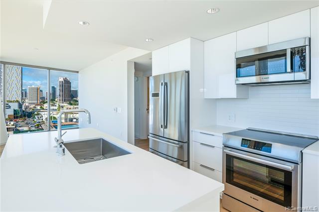 今日ご紹介するのは、カカアコのワードビレッジに位置する、築1年と、建って間もない、タワーコンドミニアム「アエオ」の2ベッドルーム/2バスルームです。アエオといえば、最上階のルーフトトップには、ダイナミックなオーシャンビューや美しいサンセットをが一望できるレジデンスのための展望デッキ「ザ・スカイ・テラス」や、ラッププールやキッズプールを含む7階のアメニティエリアなど、レジデントのための施設が充実していることで注目を集めています。さらに、地上階にはオーガニック系スーパー「ホールフーズの」ハワイ旗艦店、和食レストラン「凛花」、医療クリニックが入居。すばらしいリゾートライフが約束されたコンドミニアムです。