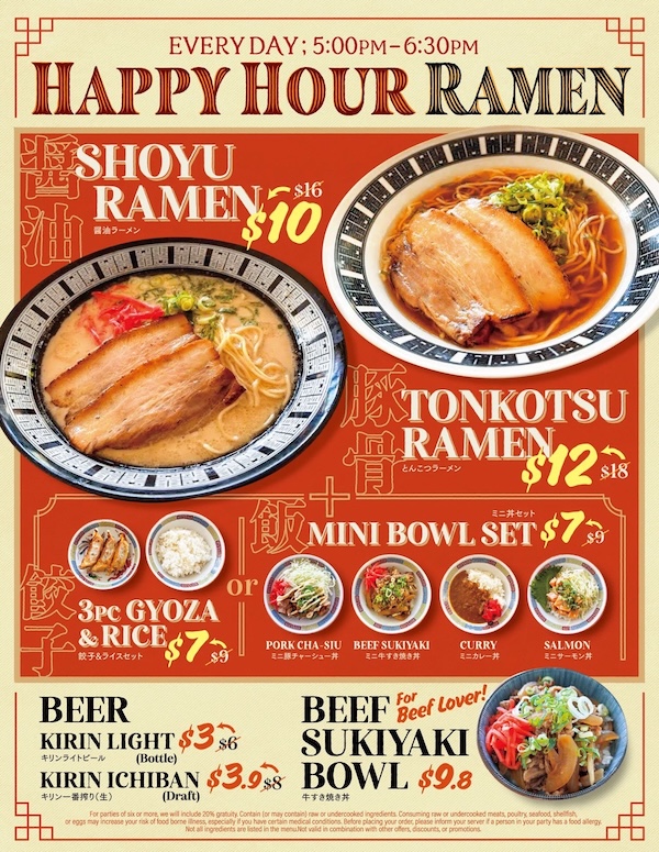CAMADOラーメン居酒屋では、$10ラーメンのハッピーアワーを延長
