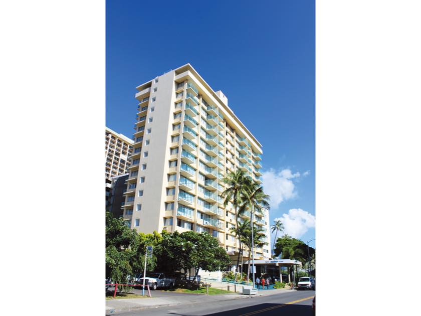 1階のオープンエアのロビーにはホテルスタッフが常駐し、ホテルとしても稼働するホテルコンド。6戸のワンベッドルームを除き、他はすべてスタジオタイプ。標準装備のキッチンはキチネットタイプ。小規模なプールとレクリエーションエリアのみのシンプルな共用施設で管理費が低く抑えられている。ワイキキビーチまで2ブロック。