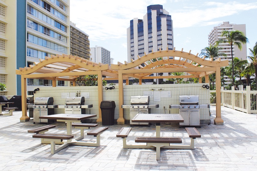 長谷工が施工し、当時は日本でも販売されたり、パッケージツアーのホテルとしても使われたりすることもあり、日本人にはなじみ深いコンド。総戸数の多さからか、施設の充実度合に対するお手ごろな管理費も特徴。各戸のラナイは奥行きがあり広く、スタジオタイプでも4人掛けのテーブルが置ける広さなので、アウトドアリビングとしても活用できる。