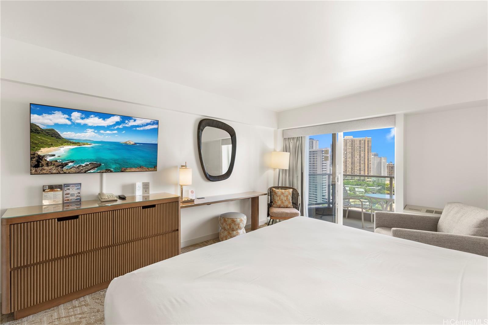 Welcome to this newly updated Waikiki Tower studio at Ala Moana Hotel, perfect for a peaceful island retreat or vacation rental. Inside, enjoy a comfortable queen bed and full bathroom, plus a private lanai with city and ocean views. The property offers access to amenities including a pool, sauna, fitness center, and on-site dining and retail. Ideally located near Ala Moana Center, the Hawaii Convention Center, and Waikiki’s dining and entertainment options, this studio offers a great opportunity to experience island living in a prime location.