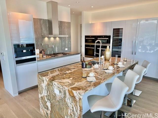PENTHOUSE! in Ultra-Luxurious Condo "Waiea" in famous Kakaako. 3 COVERED PARKING and 2 Big storage rooms at 3rd floor in the building. PENTHOUSE has HIGH ceiling, bathrooms with Marble wall and big tab. Beautiful Ocean view and sunset. Condo amenities are also superior. Resort amenities in the infinity pool. Jacuzzi. spa, Gym, Sauna and steam Sauna, theater, golf simulator, library, and big party room with full kitchen, with super OMOIYARI hospitality concierge, front desk service and 24/7 security service. Enjoy Alamoana beach park in front of the property. Full furnished with Italian LUXURIOUS furniture by a designer. only owner used, professional housekeeping monthly , so inside is super clean like new!
