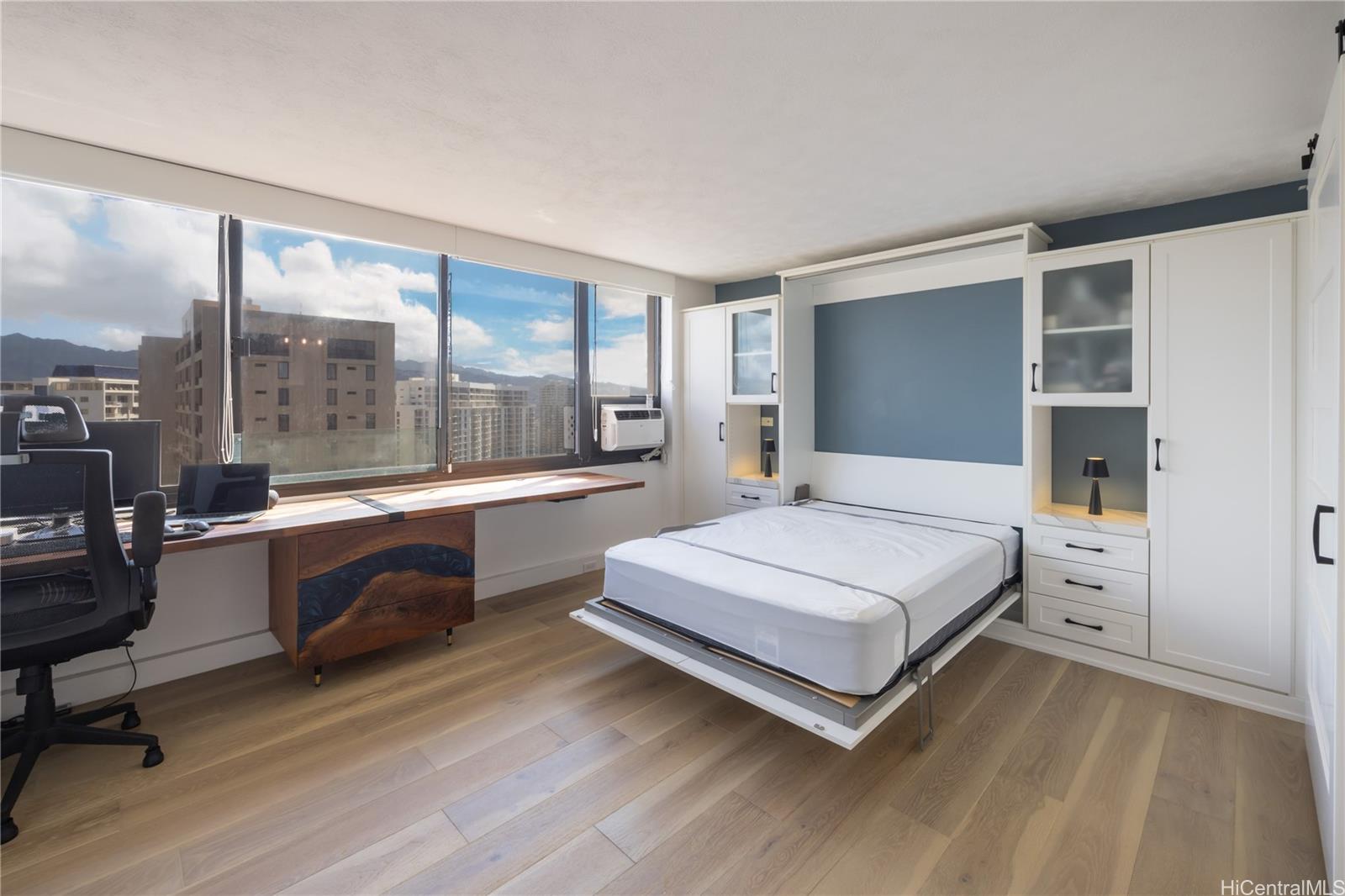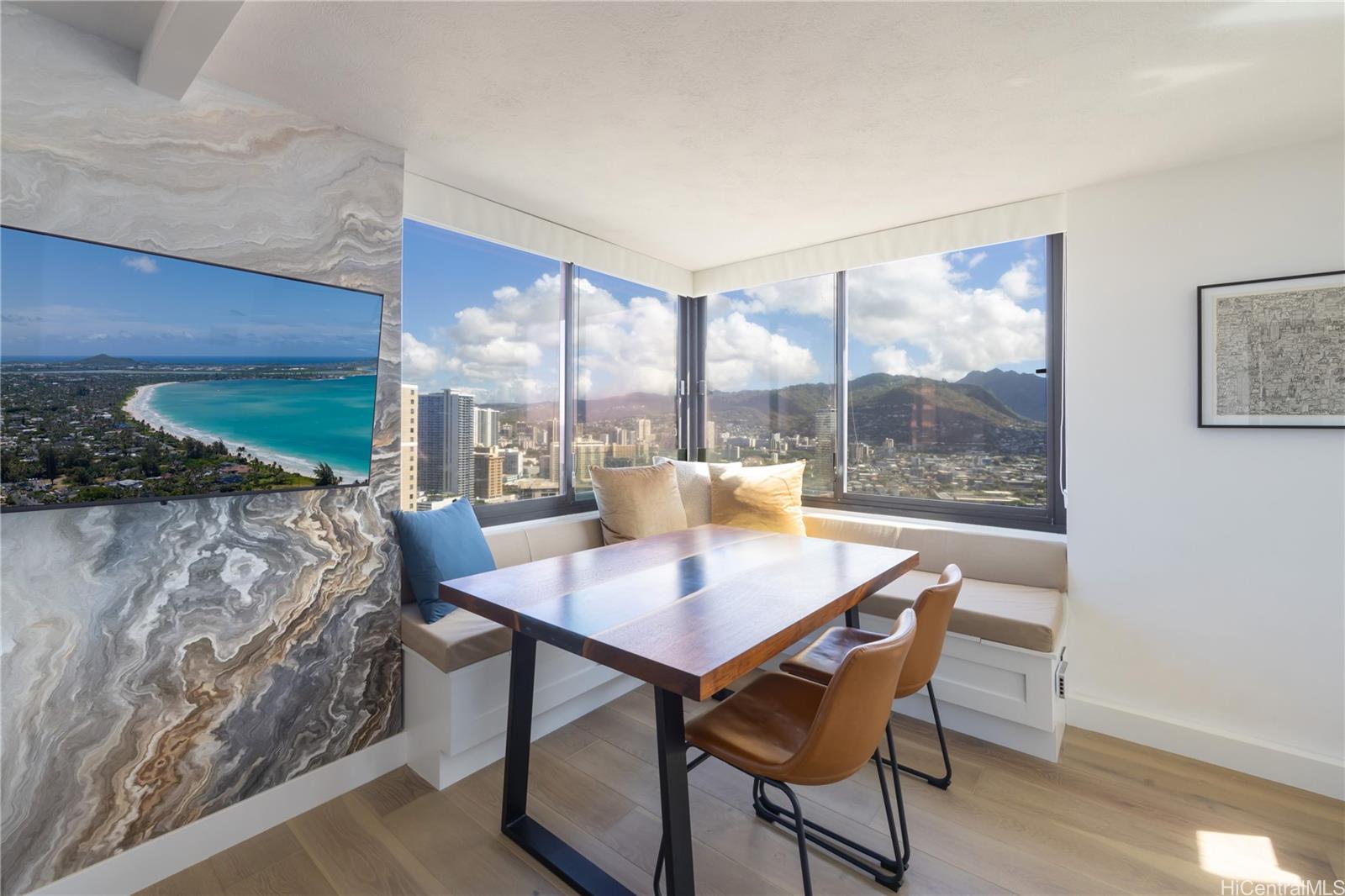 Tech enthusiasts will love this sleek and fully modern unit with stylish design, comfortable furnishings, and quality amenities. The Windsor at 343 Hobron Lane was originally built as the Hobron Hotel in 1983, later renamed The Outrigger Hobron, and converted to The Windsor condominium in 2003. The building was fully remodeled in 2004 with luxury features including a grand lobby entrance, waterfalls, rooftop sky terrace, and recreation facilities. Conveniently located at the western end of Waikiki near Ala Moana, yet surrounded by mature trees that create a relaxing and peaceful atmosphere.