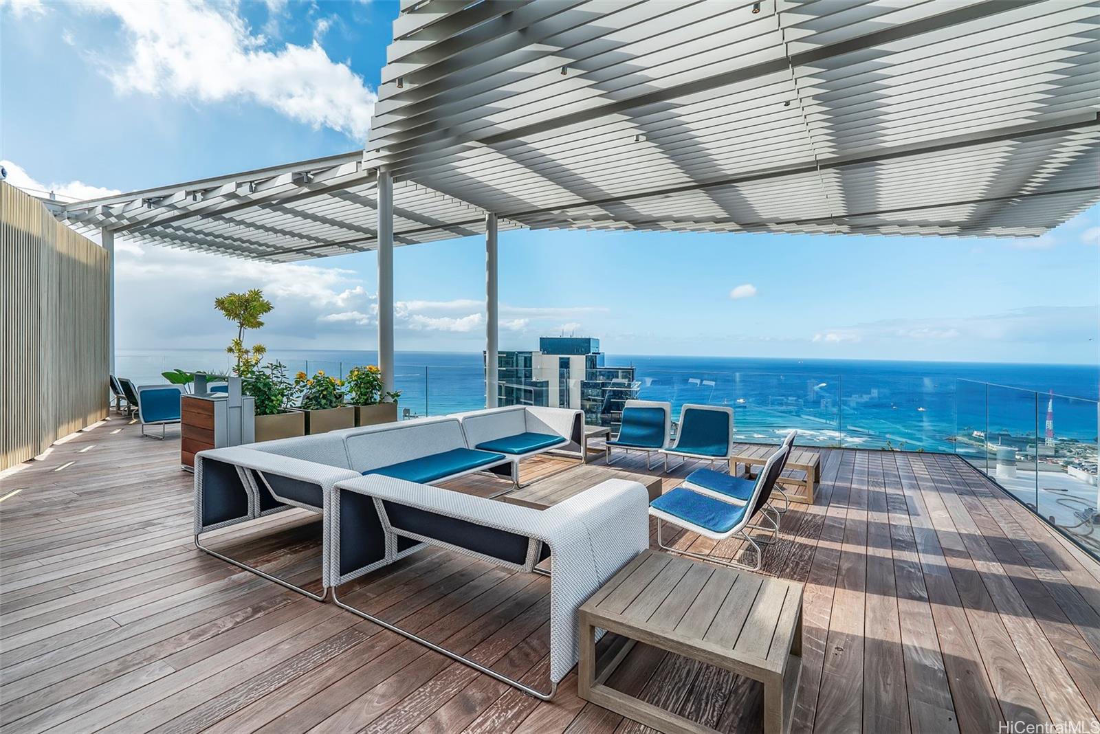 A prestigious and highly convenient high-rise condominium located in the luxurious Ward Village. This unit offers 2 bedrooms, 2 bathrooms, and two separately deeded assigned parking stalls(on the 3rd and 6th floors), along with deeded storage unit conveniently located in front of the parking area. The additional parking and storage are both rentable and sellable separately. Enjoy direct access to Whole Foods Market from Ae'o, and proximity to Ward theater and Ala Moana Center. It also offers luxurious amenities including a ocean-view swimming pool, a lap pool, a state-of-the-art fitness center, a rooftop sky terrace, a BBQ area with dining cabanas, a media room, a dog park, guest suites, and more. The unit is in excellent condition with brand-new paint and is a breezy corner unit. See your future home - this a must see!!