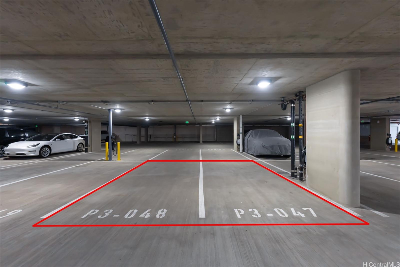 Be the first to reside in this pristine high-floor corner unit at Victoria Place, Honolulu's newest front-row luxury tower. The coveted '10 stack is prized for its corner position and setback from Ala Moana Blvd., offering unobstructed ocean views and privacy. Designed by Solomon Cordwell Buenz with landscaping by VITA Planning & Landscape Architecture, Victoria Place embodies modern island elegance with lush tropical grounds and resort-style amenities—multiple pools, hot/cold plunge spas, gym, yoga/pilates studio, wine cave, private dining with chef’s kitchen, theater, guest suites, and a clubhouse with its own pool. 24-hour concierge and valet service ensures effortless living. This residence features Studio Becker cabinetry, Sub-Zero and Wolf appliances, floor-to-ceiling windows, and two side-by-side parking stalls on the preferred 3rd floor. Offered fully furnished, move-in ready, with upgrades including automatic blackout shades, 2 Neorest Toto toilets, and EV charging. With its premier positioning, designer finishes, and turn-key presentation, Residence 1710 captures the essence of elegant and modern Hawaiian urban living at one of Honolulu’s most prestigious addresses.
