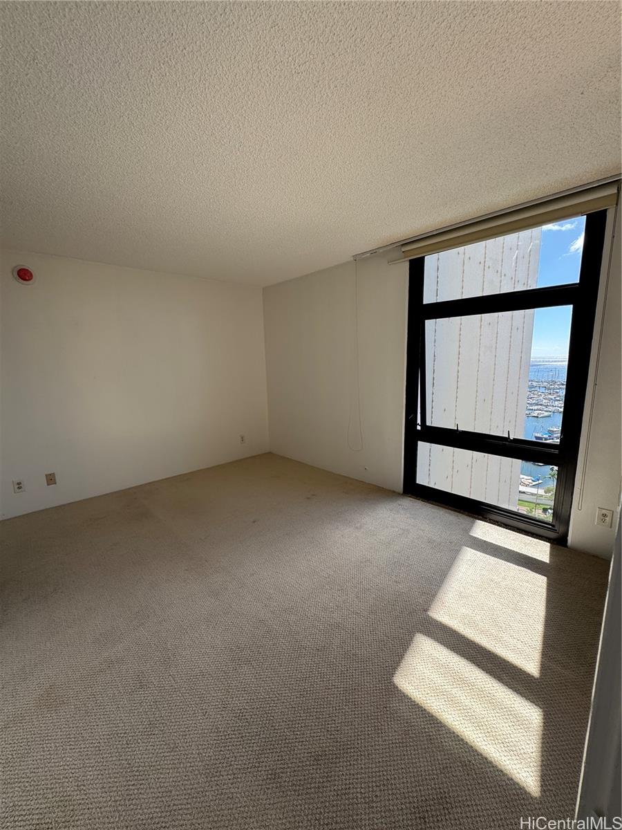Enjoy beautiful marina views from this 1 bedroom/1 bathroom unit with enclosed lanai in the Ewa Tower. Conveniently located near Ala Moana Shopping Center and Beach Park.