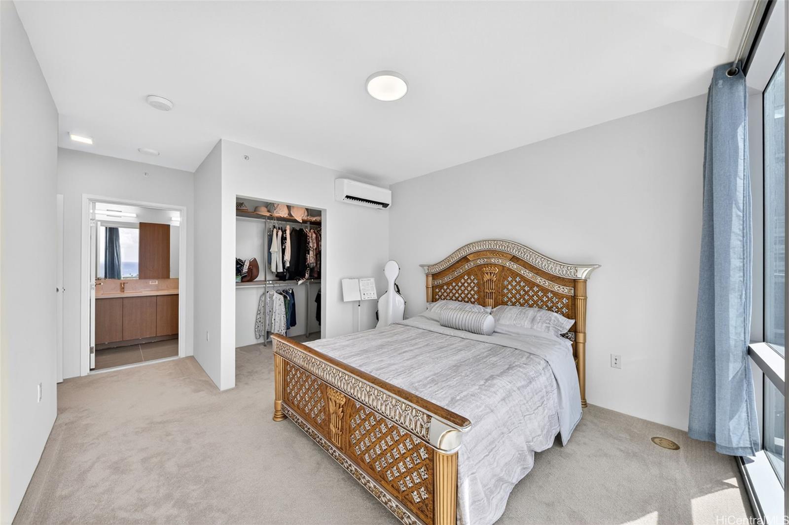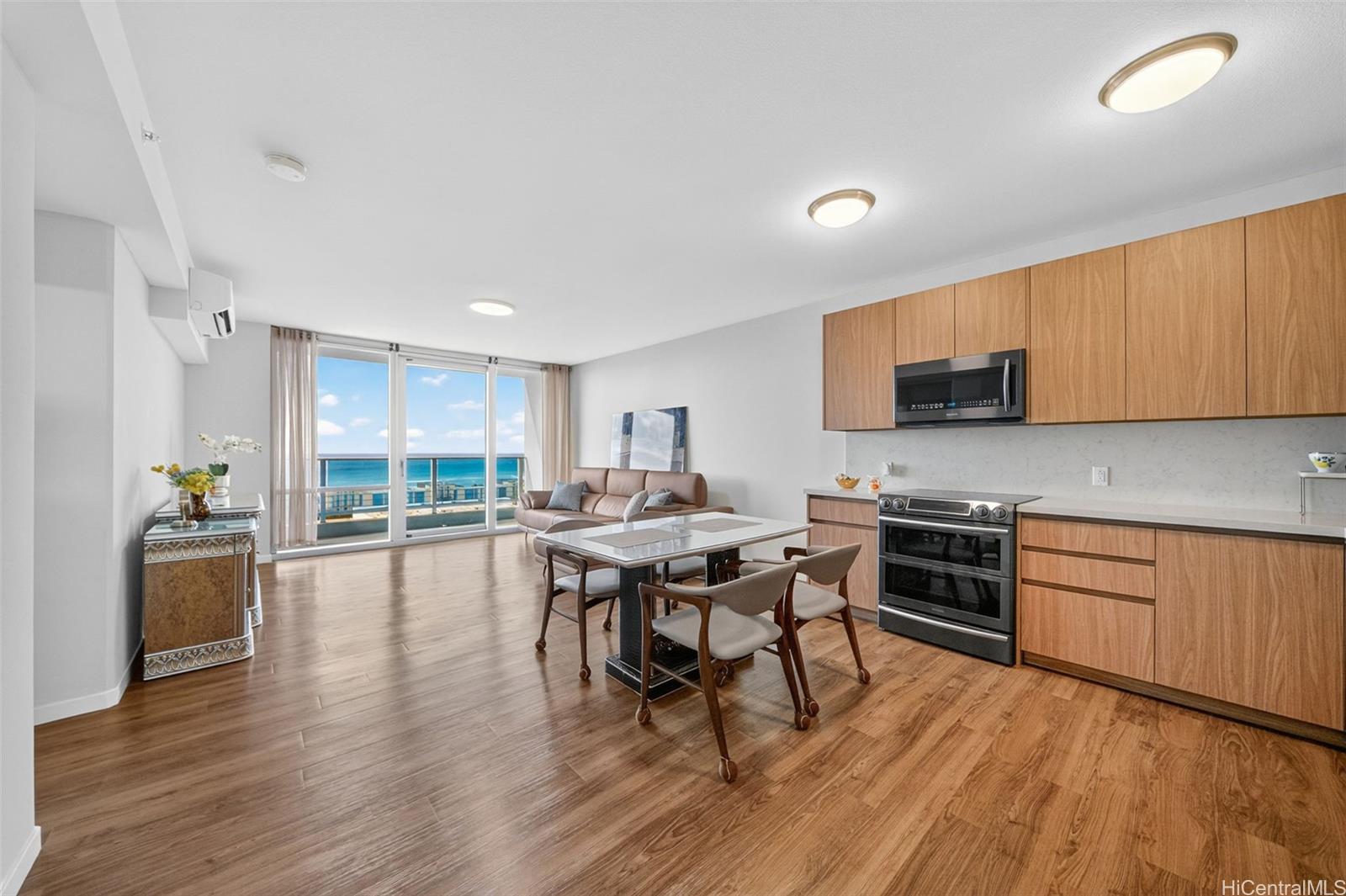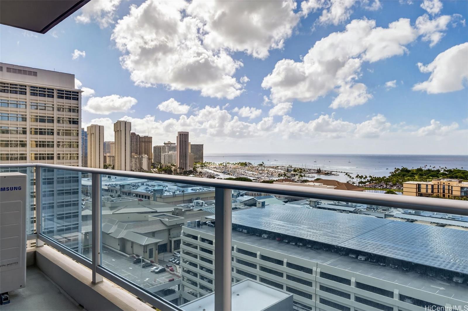Welcome to The Central Ala Moana, your luxurious retreat in the heart of Honolulu. This beautifully designed 2-bedroom, 2-bath, 1-parking residence offers breathtaking panoramic ocean, harbor, and city views from every room. Enjoy front-row seats to Friday night fireworks from your spacious lanai. The modern open-concept kitchen features quartz countertops, a sleek pantry system, and a bright dining area perfect for entertaining. The primary suite boasts a custom walk-in closet and a spa-inspired bathroom with dual sinks and a soaking tub. Additional highlights include a walk-in laundry/storage room with a full-size washer and dryer, split A/Cs in every room, and elegant luxury vinyl flooring and carpet flooring. Well maintained unit is the owner's pride. The Central Ala Moana offers resort-style amenities, including a heated infinity pool, fitness center, BBQ cabanas, party room, and dog park. This unit has an easy access spacious parking; this residence combines comfort and convenience. Ideally located near Ala Moana Shopping Center, Ala Moana Beach Park, Waikiki, and top dining and shopping destinations — this is urban island living at its best with a prime location.