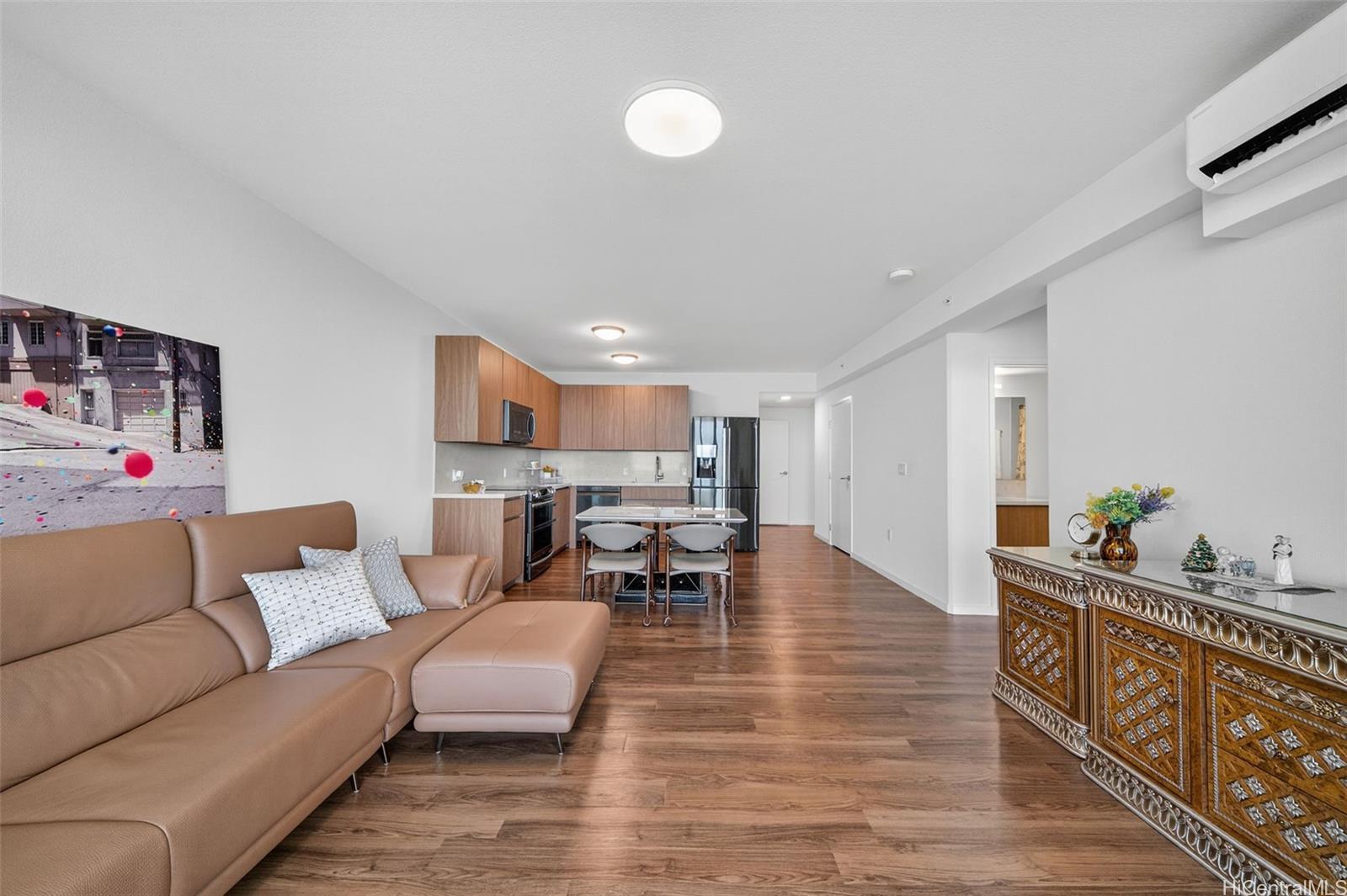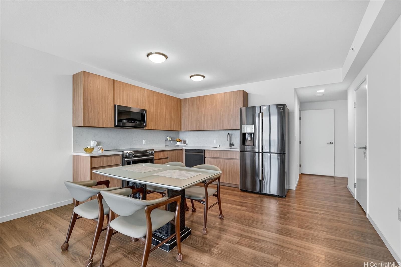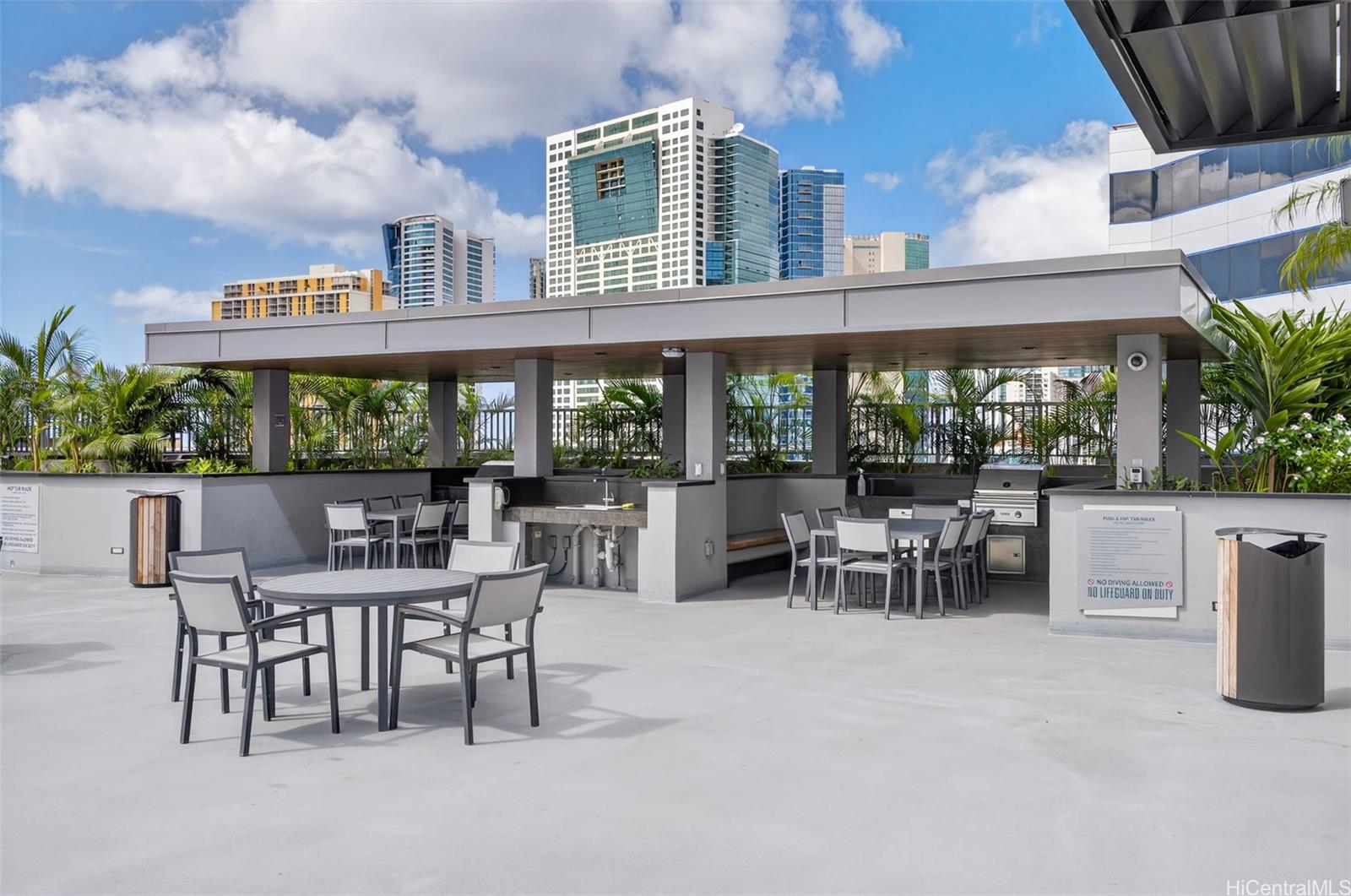 Welcome to The Central Ala Moana, your luxurious retreat in the heart of Honolulu. This beautifully designed 2-bedroom, 2-bath, 1-parking residence offers breathtaking panoramic ocean, harbor, and city views from every room. Enjoy front-row seats to Friday night fireworks from your spacious lanai. The modern open-concept kitchen features quartz countertops, a sleek pantry system, and a bright dining area perfect for entertaining. The primary suite boasts a custom walk-in closet and a spa-inspired bathroom with dual sinks and a soaking tub. Additional highlights include a walk-in laundry/storage room with a full-size washer and dryer, split A/Cs in every room, and elegant luxury vinyl flooring and carpet flooring. Well maintained unit is the owner's pride. The Central Ala Moana offers resort-style amenities, including a heated infinity pool, fitness center, BBQ cabanas, party room, and dog park. This unit has an easy access spacious parking; this residence combines comfort and convenience. Ideally located near Ala Moana Shopping Center, Ala Moana Beach Park, Waikiki, and top dining and shopping destinations — this is urban island living at its best with a prime location.