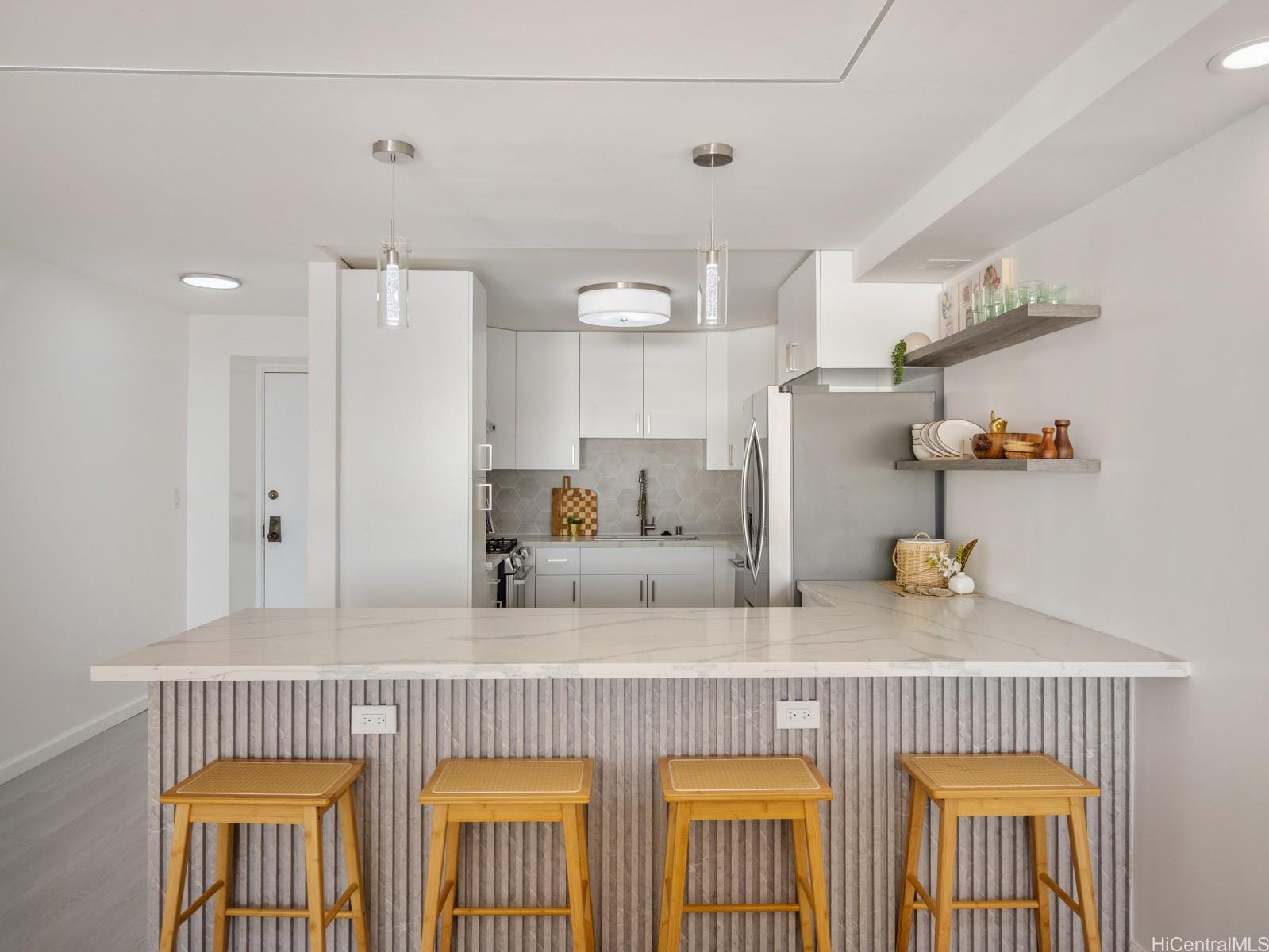 Welcome to this fully remodeled Yacht Harbor Towers unit, where luxury meets breathtaking beauty. This modern 2-bedroom, 2-bathroom unit offers sweeping, panoramic views of the ocean, colorful sunsets, and the yacht harbor. Situated just steps away from the Ala Moana Shopping Center, beach parks, and an array of dining options, this residence captures the essence of convenience and style.