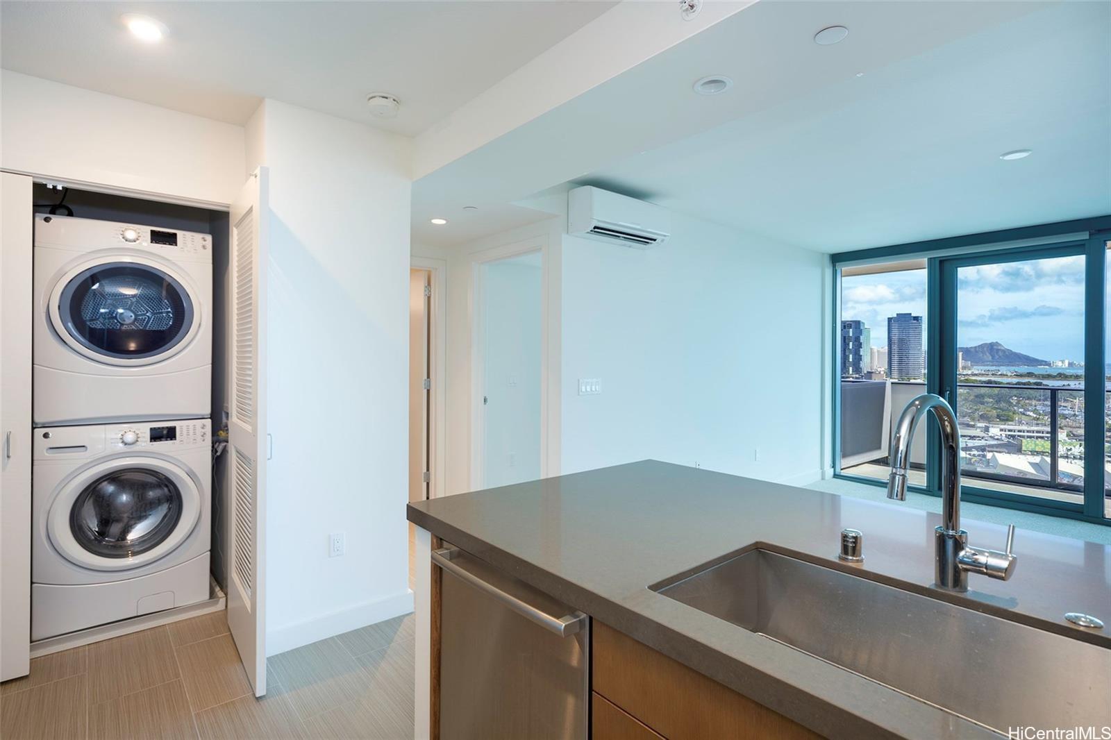 Discover a rare opportunity to own a stunning 1-bedroom, 1-bath condo with a coveted parking space, boasting breathtaking ocean and city views. Located in "The Collection," one of Honolulu's newest condo projects, this home features a spacious modern kitchen equipped with sleek stainless steel appliances and elegant quartz countertops. Enjoy a variety of amenities, including a refreshing pool, a relaxing whirlpool, BBQ cabanas for outdoor gatherings, a well-equipped fitness center, and a club room complete with a full kitchen—perfect for entertaining friends and family. This pet-friendly residence also offers 24-hour security, making it a secure and welcoming environment. Don't miss out on this incredible opportunity—it won't last long! For inquiries, please reach out to TG, Yali Kuang.