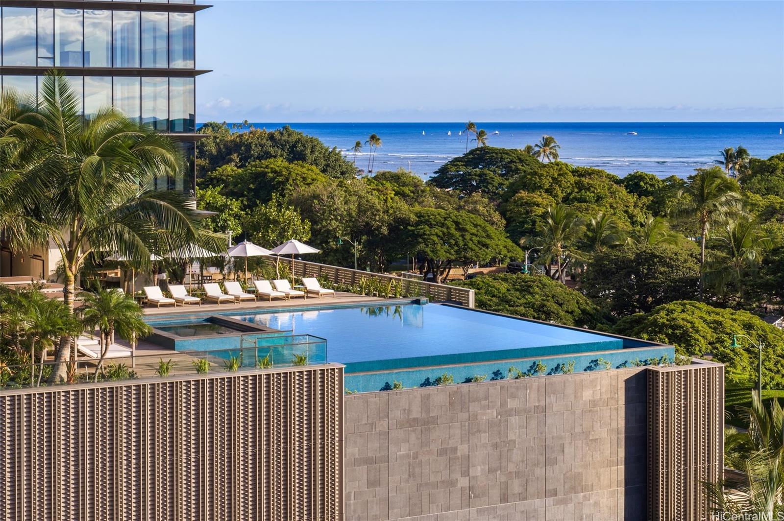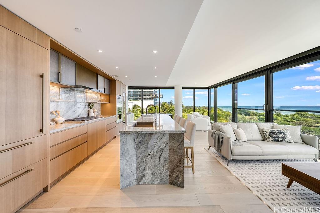 ワードビレッジの最新開発物件、ビクトリアプレイスの中でも人気の高い東向きの'00スタックに位置する、希少な3ベッドルーム、3バスルームのユニットです。この角部屋からは、太平洋、ボートハーバー、ダイヤモンドヘッドを見渡す素晴らしい眺望をお楽しみいただけます。広々とした3ベッドルーム、オフィスコーナー、独立したランドリールームを備えた機能的な居住空間には、スタジオベッカーによる特注キャビネット、サブゼロ冷蔵庫、ウルフガスレンジ、オーブン、電子レンジも完備しています。ビクトリアプレイスは、建築家ソロモン・コードウェル・ブエンツが設計し、ワードビレッジの最前列に位置する350ユニットの高級開発物件です。共用エリアはVITAプランニング&ランドスケープ・アーキテクチャーによる緑豊かな造園が施され、オーシャンビューのラッププールとラウンジプール、ワインセラー、スパ、温水・冷水プランジプール、フィットネスセンター、映画館、24時間対応のコンシェルジュ&バレーパーキングサービスなど、リゾートスタイルのアメニティも充実しています。このユニットには、2階に並列駐車スペースが2台分あり、EV対応の240V電源コンセントが建設時に設置されています。このユニットの販売には、収納ユニットは付属しません。