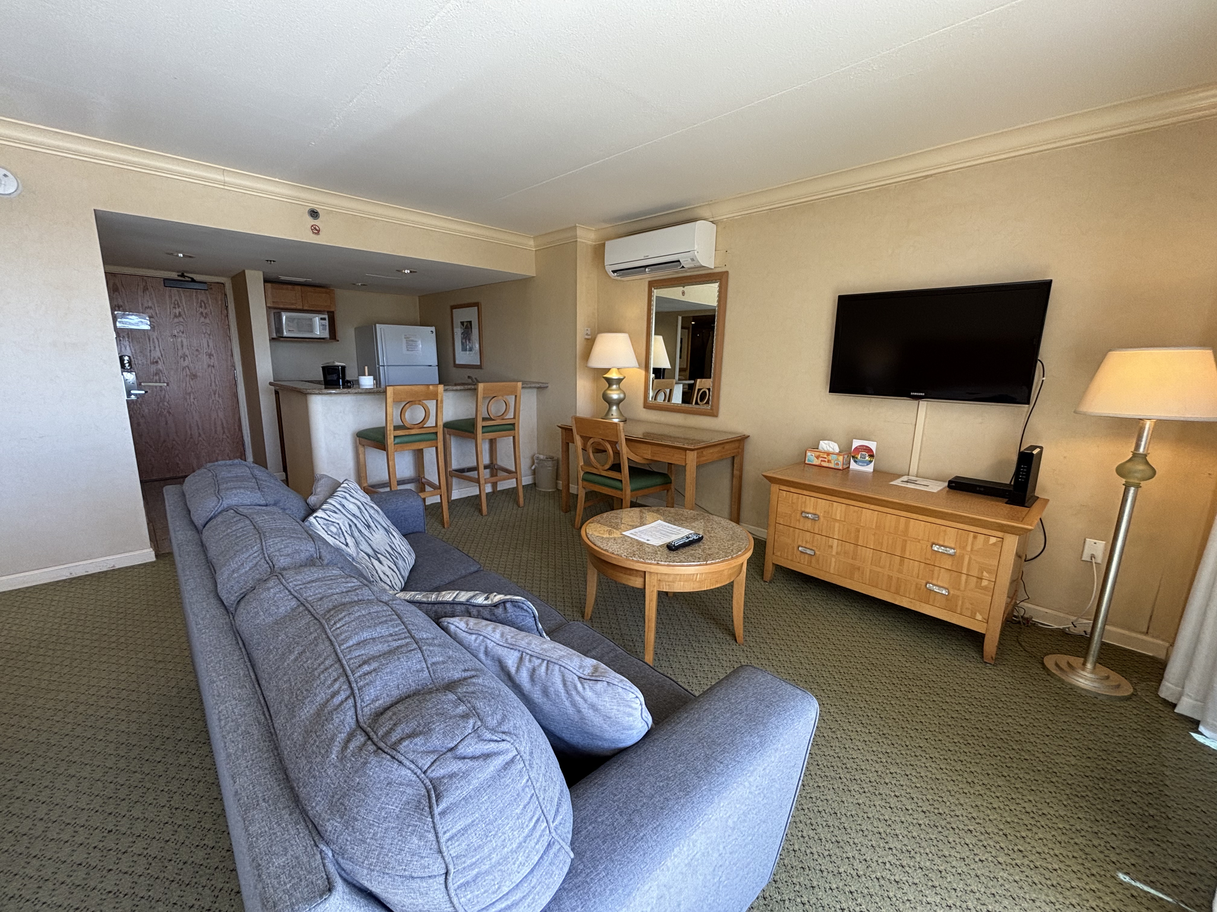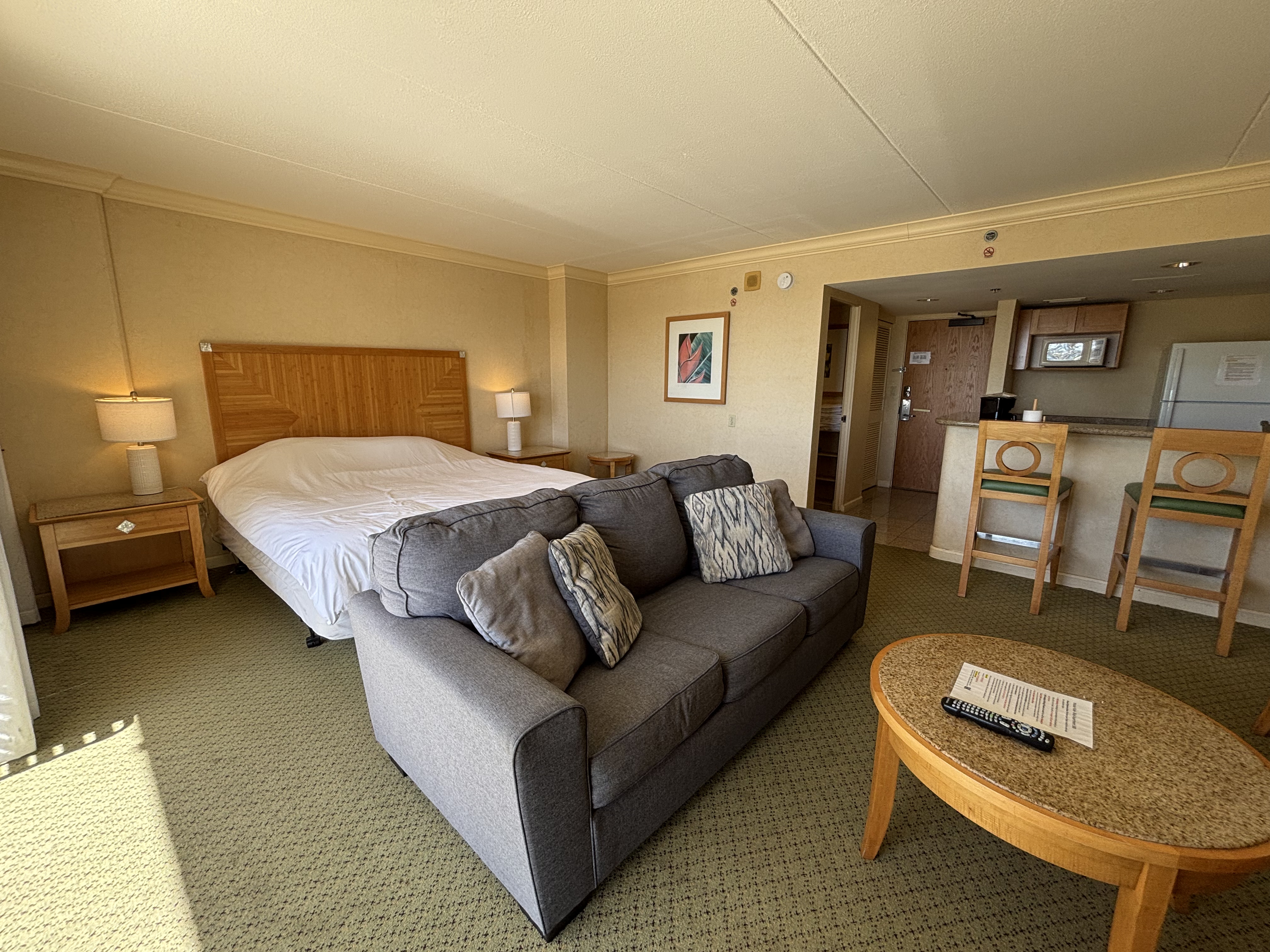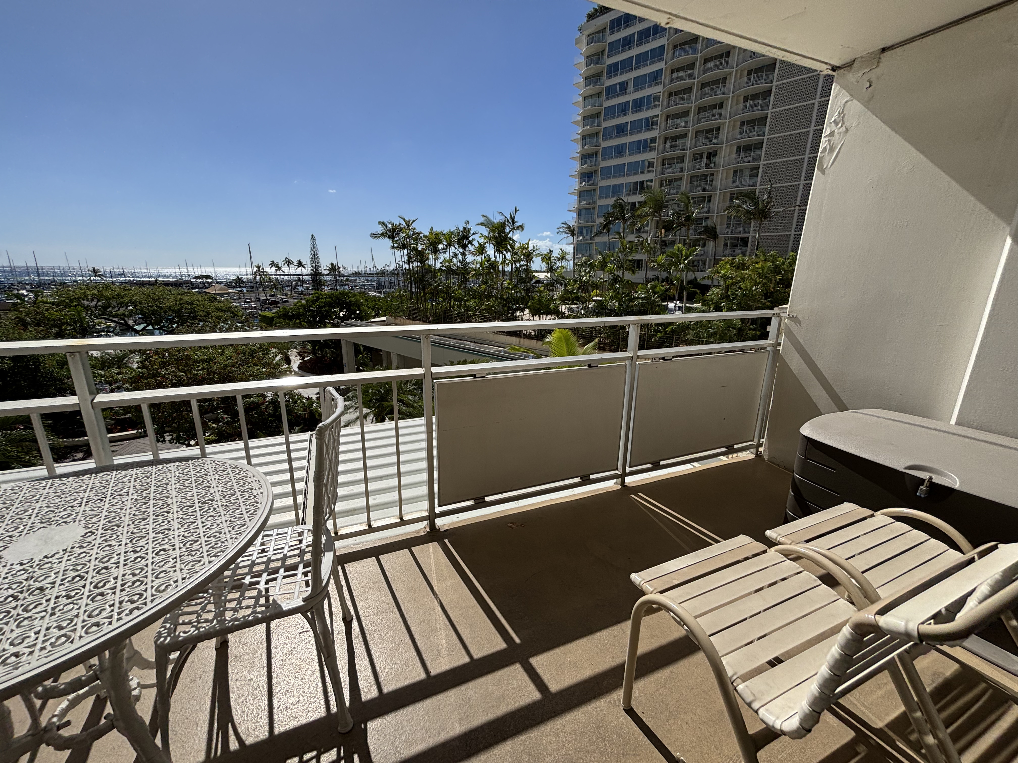広々としたスタジオタイプ。素晴らしいオーシャン&ハーバービュー。ベッドルーム1室、バスルーム1室、広々としたラナイ付き。