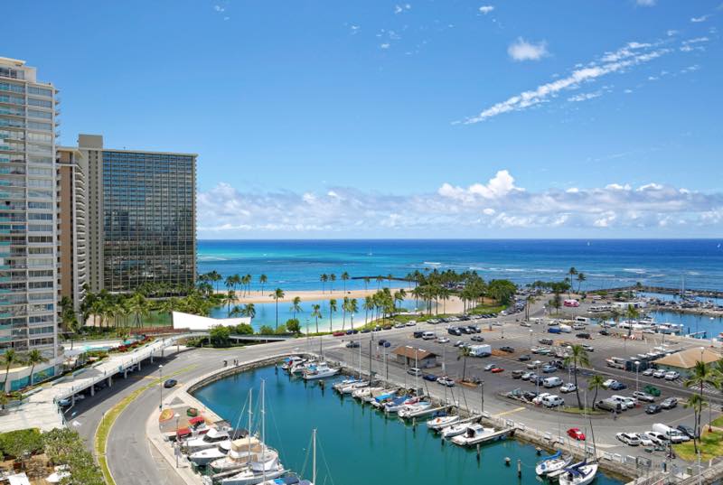 広々とした綺麗な1ベッドルーム・1バスルームのバケーションレンタル。海側の角部屋なので、2面の大きな窓からの素晴らしいオーシャン、ラグーン、マリーナビューのパノラマをお楽しみください!セントラルエアコン、フルキッチン、バスタブ、無料Wi-Fiも付いており、ゆったりとしたハワイステイを快適にお過ごし頂けるコンドミニアムです。