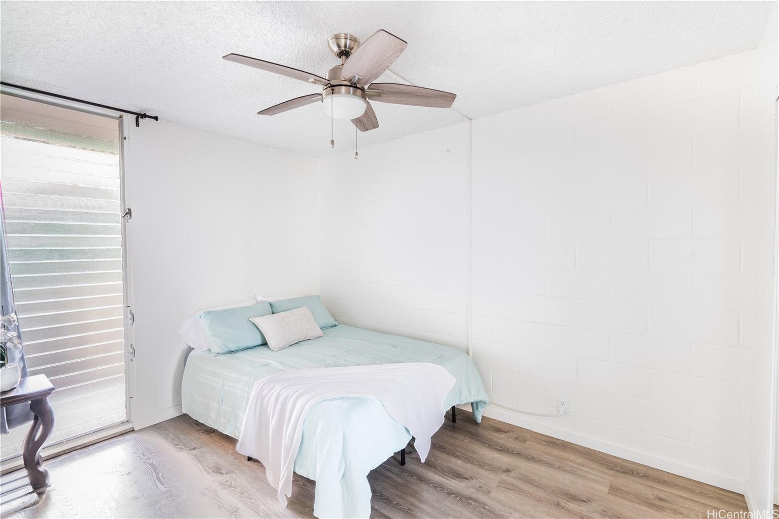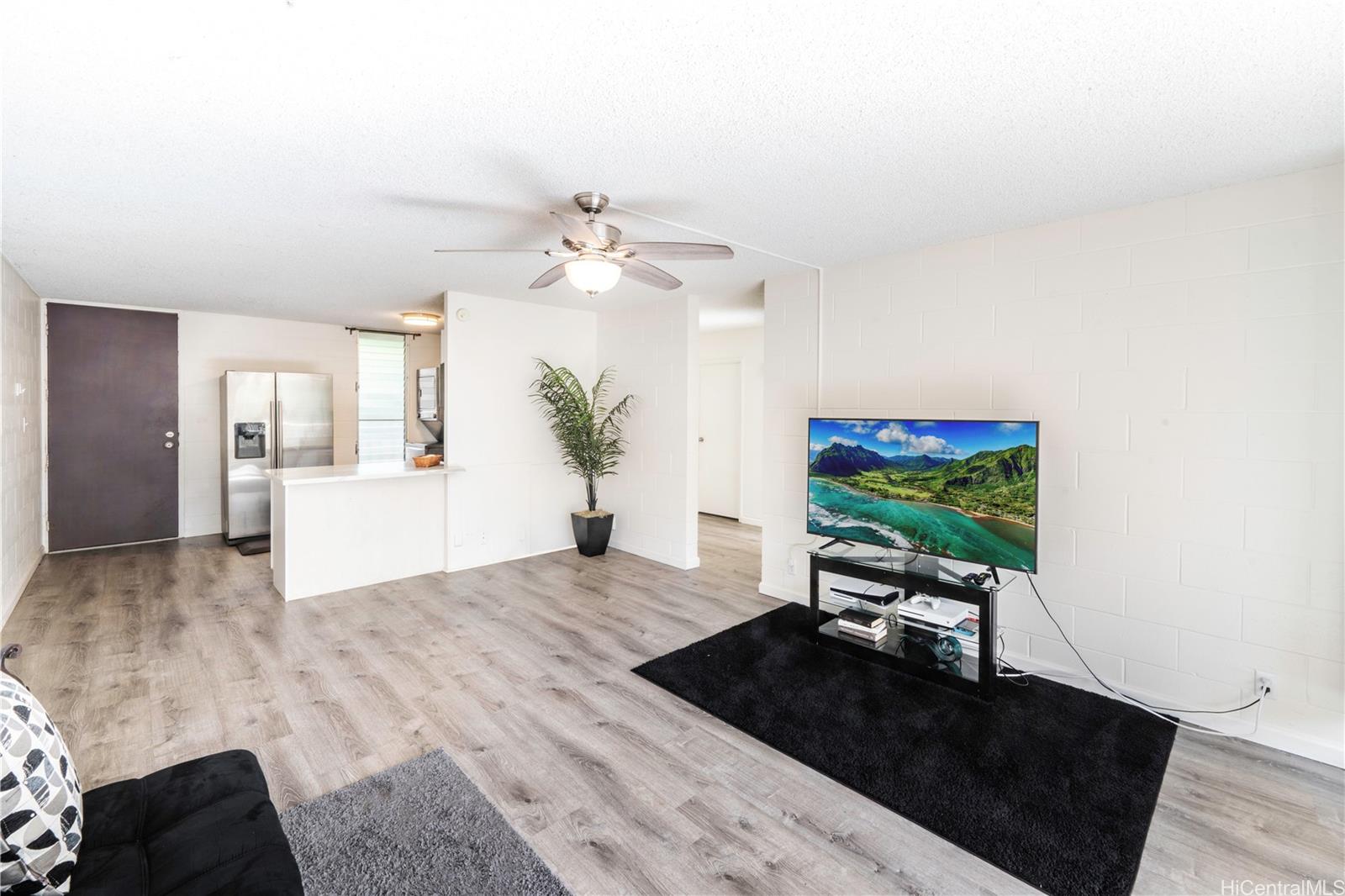 Welcome to Waikalani Woodlands in Mililani’s serene Launani Valley! This charming 2-bedroom, 1-bath condo offers 793 sqft of comfortable living space with modern upgrades and desirable amenities. The unit boasts beautiful white quartz countertops, stainless steel appliances, a brand-new hot water heater and a large lanai—perfect for indoor-outdoor living while enjoying the valley’s lush surroundings. The sought-after ‘01’ stack location places you conveniently in the middle of the building, just steps from the elevators. Take advantage of the VA ASSUMABLE loan with a $325k balance at an incredible 2.875% interest rate—a rare opportunity for eligible buyers! Water, sewer, basic cable and internet are included in HOA fees! Waikalani Woodlands’ amenities are perfect for entertaining