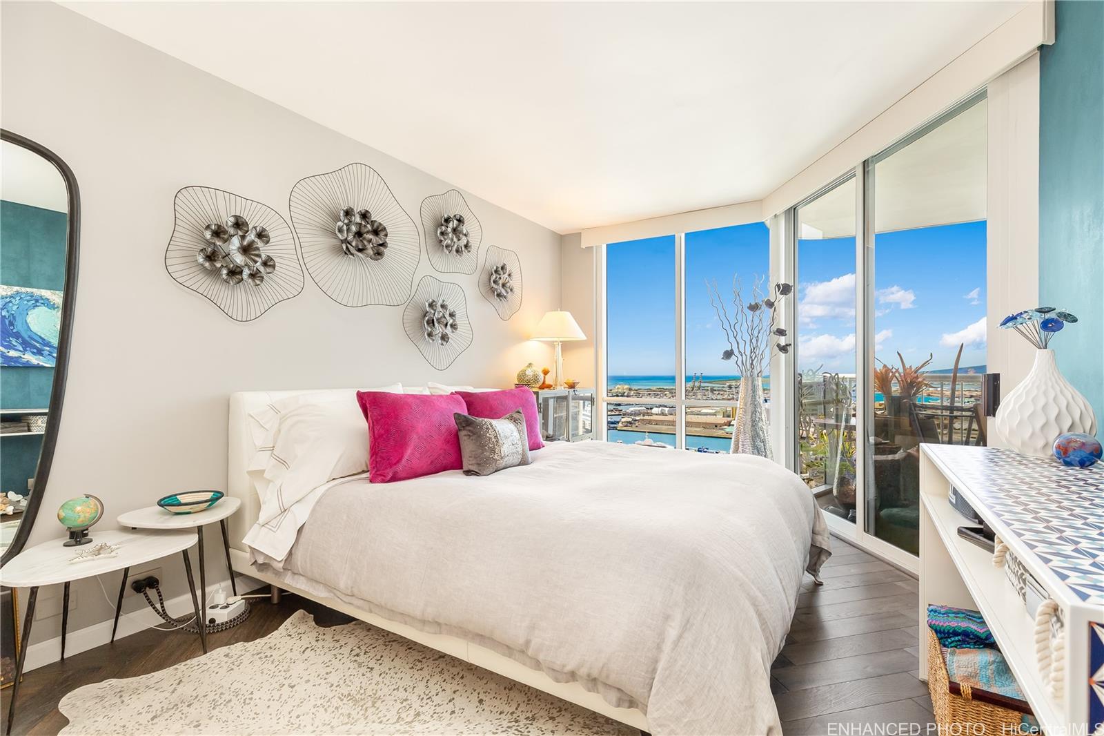 Luxurious, fully remodeled one bedroom condominium now available! If you are looking for a custom high end renovation, but don’t want to spend a year waiting on the supply chain and dealing with contractors, this unit is a dream come true! Enjoy amazing views of the ocean, harbor and downtown from the large spacious lanai on the 34th floor. The owner spared no expense on every detail which makes this unit truly one-of-a-kind. The luxurious interior features ultra high end brands and custom finishes - Subzero refrigerator, Wolf steam oven with cooktop and hood, Kohler faucets, led illuminated custom countertop/bar, custom blossom lights from 3form, maple wood kitchen cabinet with custom frosted glass, Asko washer/dryer, deep soak tub, and a brand new Toto washlet toilet. Owner also invested thousands in properly cleaning the AC ducts to ensure clean air throughout the unit and upgraded thermostat. The building is packed with amenities which include a large gym, pool, large jacuzzi, tennis court, bowling alley, racquetball/basketball court, koi pond, bbq area, car wash and so much more. Close distance to the downtown offices and many hidden restaurant gems. Must see!
