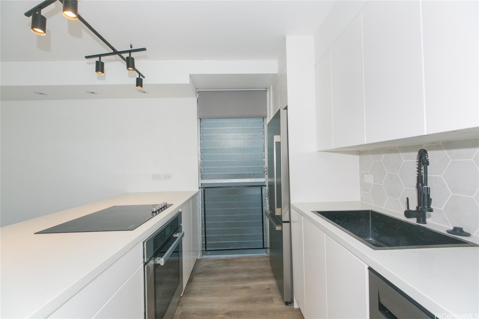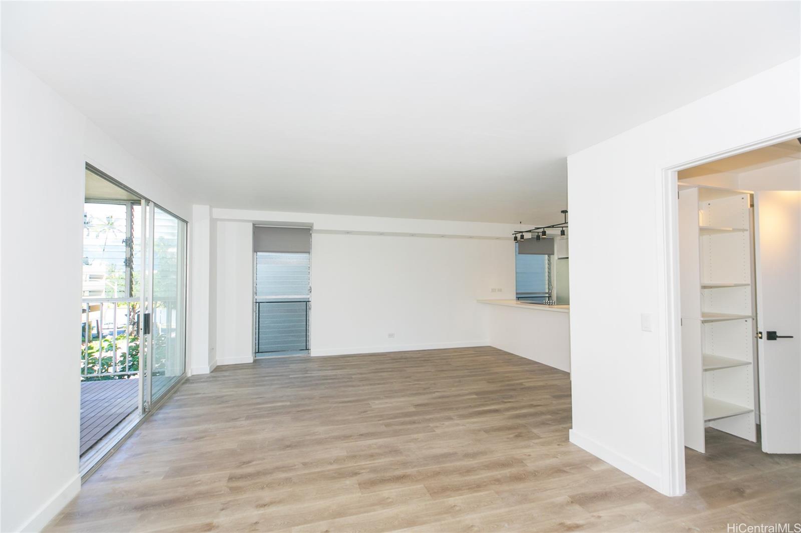 Newly renovated 1-bedroom, 1-bathroom condo in the Walina Apartments is a stylish and modern gem, with lots of upgrades, tankless water heater, new lifeproof floors installed, new in-unit washer and dryer, new pipes installed, up to code electric panel and wiring The ultimate in convenience and comfort. This pet friendly unit features a secure building with only 4 units per floor, providing a quiet, intimate living experience. The open floor plan maximizes the space, creating a bright and airy atmosphere, while modern upgrades throughout add a fresh, contemporary feel. Just steps from Waikiki's newest grocery store, so everything you need is right at your doorstep. 1 dedicated covered parking space. This condo blends the best of island living wit urban convenience, making it a must-see for anyone seeking a prime spot in Waikiki!