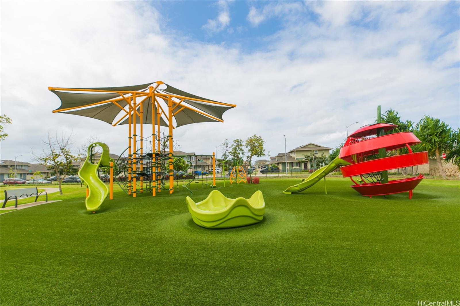 Come home to this ground floor unit that is situated along the perimeter of Kohina Phase 2. The home features 2-bedrooms and 2 full baths with 2 assigned parking. The home is equipped with vinyl flooring throughout the living room, kitchen and bathrooms whereas the bedrooms are with carpet. In addition, the unit has split AC units in the living room and both bedrooms. There is a small private yard along the street perfect for a relaxation at days end with access through the primary bedroom. This unit is in close proximity to UH West, Ka Makana Alii Shopping Center, Croc Center, freeway access, rail and bus routes for convenience. The unit's water and sewer are separately billed and does not include with the maintenance fee.