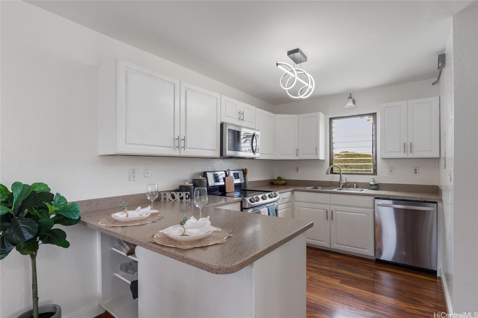 Step inside this rarely available bright, airy, and inviting 3-bedroom, 2.5-bath split-level townhome tucked away in the heart of Aiea. This spacious corner unit at Tropicana Village feels like a single-family home with 1,361 sq ft of interior space and two side-by-side parking stalls right outside your door.